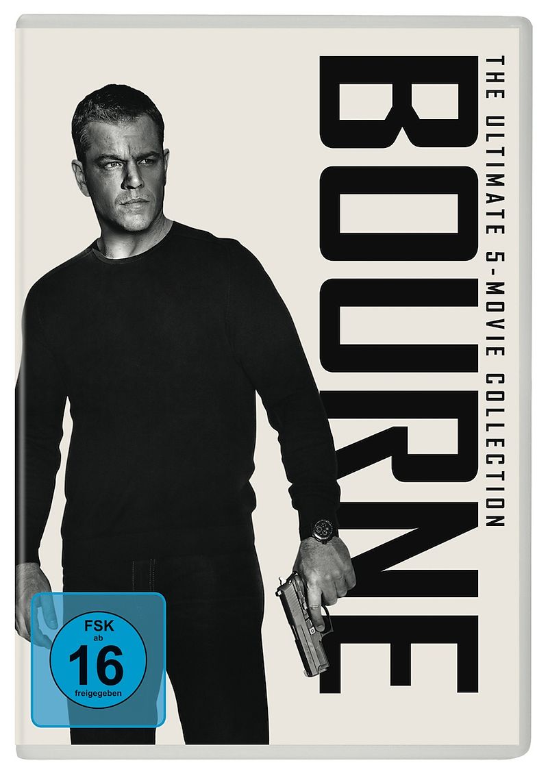 Bourne - The Ultimate 5-Movie Collection (5 Discs) Various Die Bourne Identität (USA 2002, 114 Min, FSK 12): In einer stürmischen Nacht zieht die Crew eines italienischen Fischerbootes einen halbtoten Mann aus dem Wasser. Trotz der zwei Kugeln in seinem Rücken...Bourne - The Ultimate 5-Movie Collection (5 Discs) Various