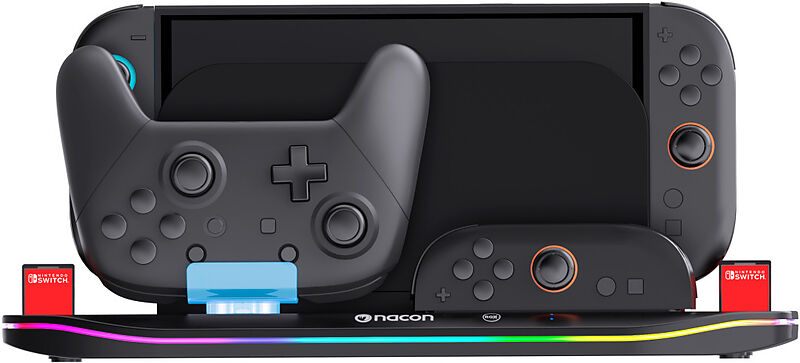 Dock'N'Store RGB-Ladestation für Nintendo Switch 2 Pro-Controller und 2 Joy-Con Ladestation für 2 Joy-Con und 1 Pro-Controller gleichzeitig. Verbinde deine Nintendo Switch 2 Docking Station mit der Ladestation. RGB-Beleuchtung, Ladestatusanzeige. Platz für bis...