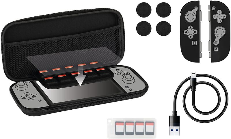 Dieses Starter-Kit enthält alles, was Sie brauchen: eine Tragetasche, eine Schutzfolie für den Bildschirm, Daumenstützen, ein Etui für 9 Spielkassetten, ein Reinigungstuch und ein USB-Kabel, damit Sie Ihre Konsole optimal nutzen können. Features Robuste Transp...