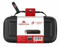 Gepolsterte Tasche mit Abtrennung zum Schutz des Displays und Netzfach zum Verstauen der Spiele.