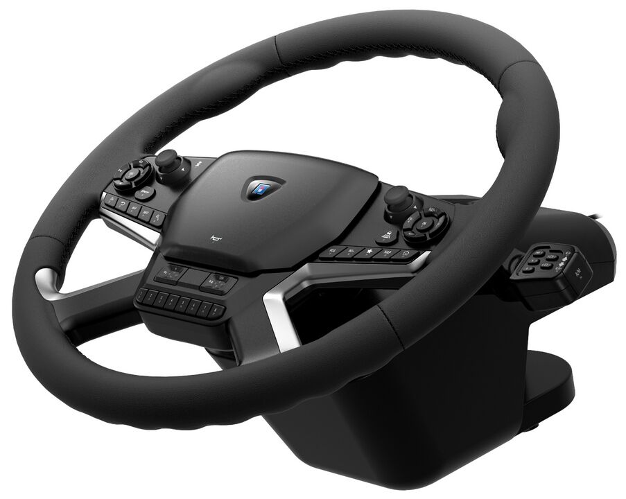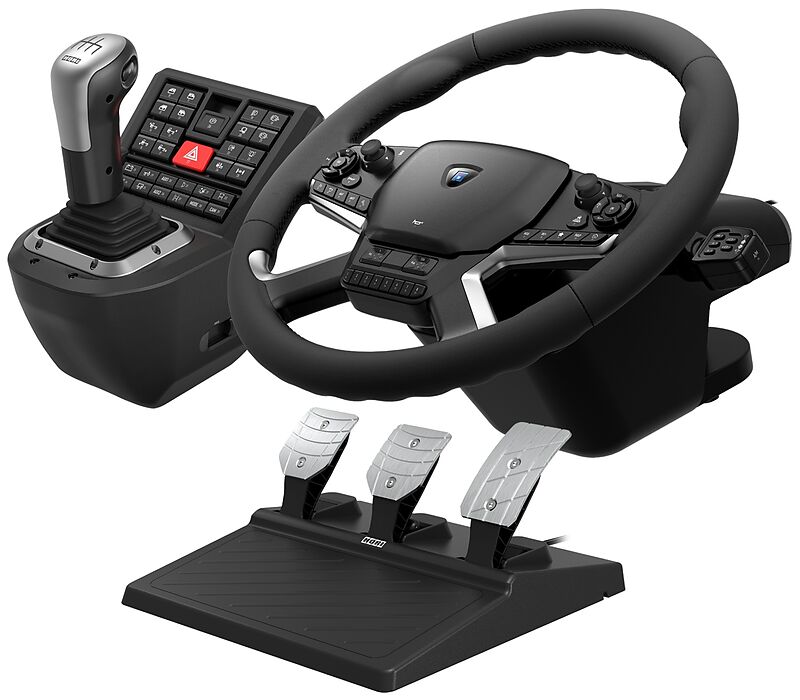 Zeit sich anzuschnallen: Mit dem HORI Force Feedback Truck Control System für PC sitzen Sie am LKW-Steuer. Das Set verfügt über ein 40 cm grosses Lenkrad mit einer Rotationskapazität von 1.800 Grad, was Lenkrädern echter Sattelschlepper entspricht. Das Force F...