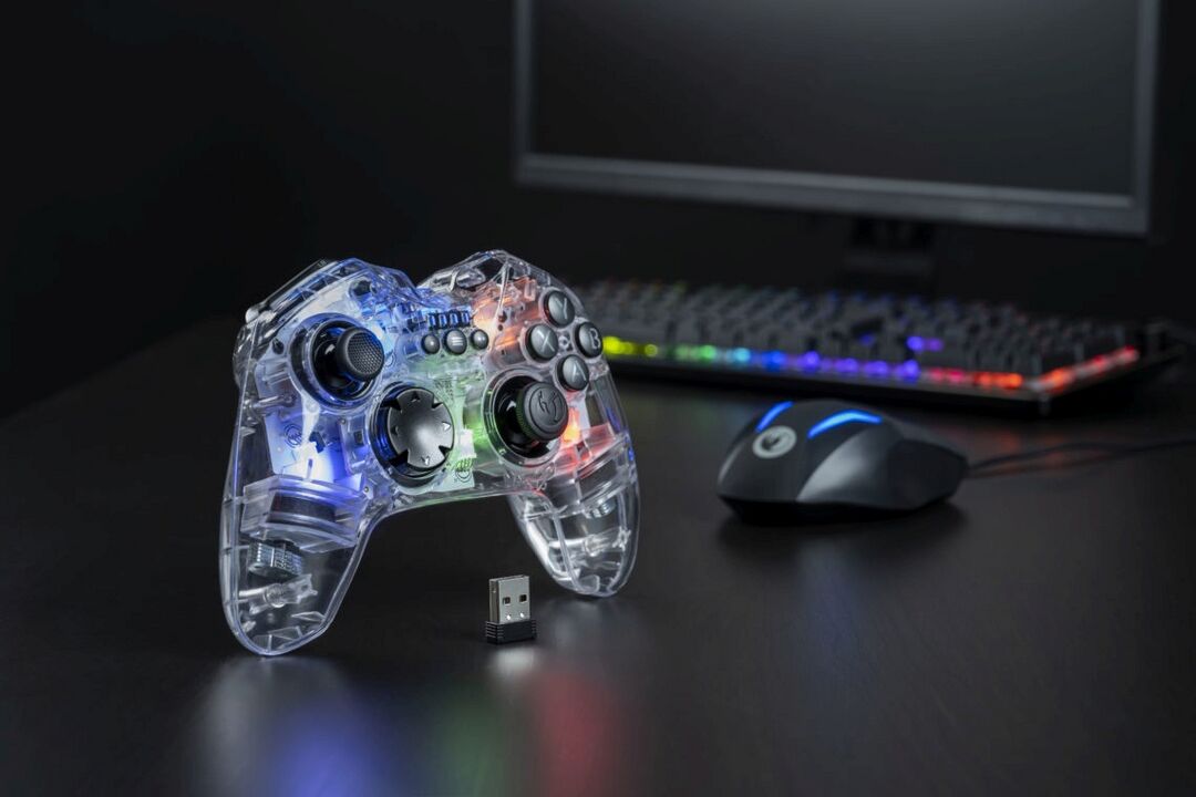 Features Kabelloser PC Gaming Controller mit 2,4 GHz Funktechnik (Reichweite ca. 10m) 2 Analog-Sticks, 6 Tasten, 2 Trigger, 2 Schultertasten, Steuerkreuz, Home-Taste 2 Vibrationsmotoren 100% kompatibel zu allen PC-Spielen (XInput& DirectInput8) Soft-Touch-...