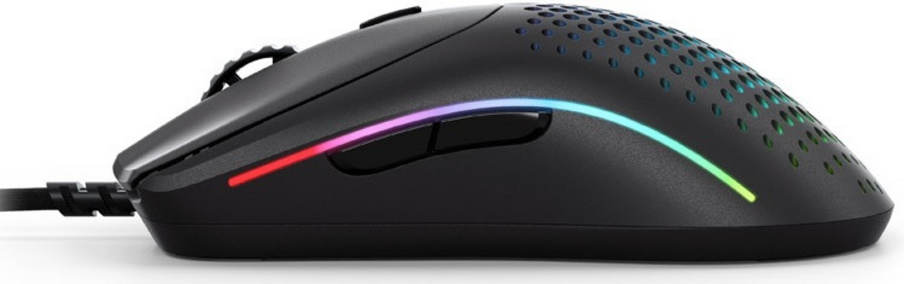 Dafür sorgen auch die grossen Gleiter aus PTFE, die eine reibungslose Bewegung garantieren, egal auf welcher Oberfläche du die Maus verwendest. Hinzu kommt das geflochtene Kabel, das Glorious selbst entwickelt hat. Es ist superflexibel und leicht, so als ob du eine kabellose Maus bedienen würdest.
