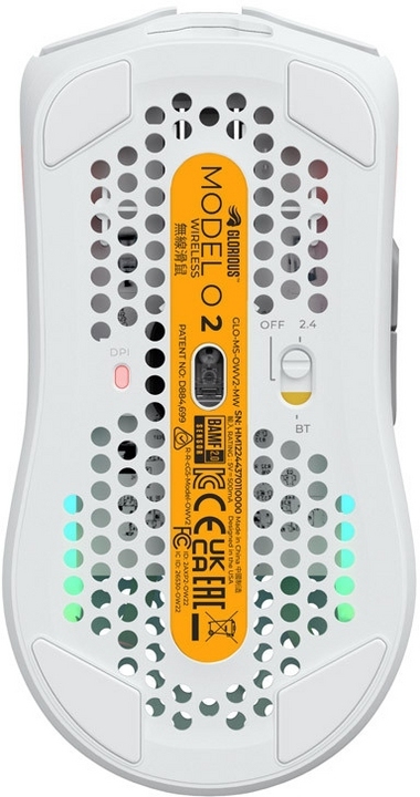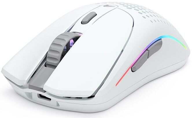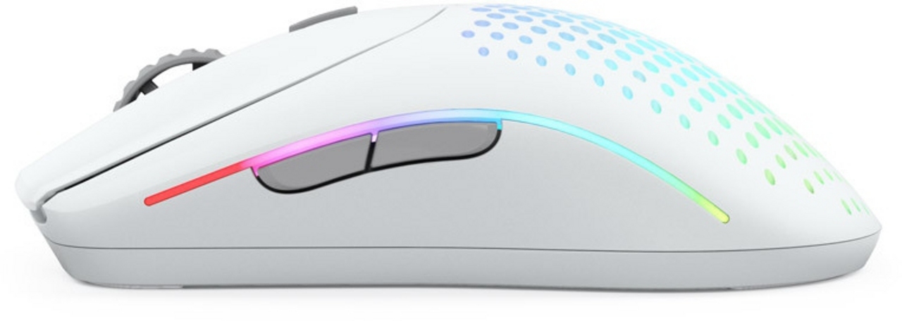 Die Glorious Model O 2 Wireless ist eine Gaming-Maus mit einem hochwertigen optischen BAMF-2.0-Sensor von Glorious und sechs Tasten. Auffällig ist die Oberseite der professionellen Gaming-Maus mit ihren Waben. Dadurch reduziert sich das Gewicht der Maus auf nur 59 Gramm. Unter der Wabenstruktur kommt die schicke RGB-Beleuchtung zum Vorschein, die die innere Mechanik der Maus zur Geltung bringt. Für die lange Lebensdauer der Model O 2 Wireless sorgen die strapazierfähigen Glorious-Switches.