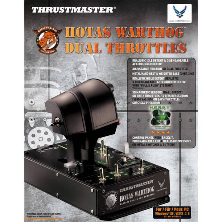 Der Hotas Warthog Dual Throttles von Thrustmaster ist ein Schubregler im Design der Replik eines A-10C-Dopplegashebels der U.S Air Force mit hochwertiger Lagerung und 14-Bit Abtastrate, zur realistischen Steuerung von Flugsimulatoren. Die 17 programmierbaren B...