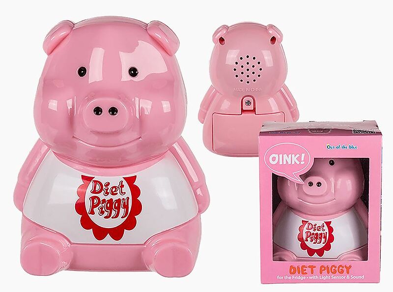 Schweinchen bringen Glück, dies trifft auch bei diesem zu: Unbelehrbare Nascher werden von diesem süssen kleinen Schweinchen auf sanfte Weise zurechtgewiesen. Beim Öffnen des Kühlschranks ertönt ein sanftes, warnendes Grunzen und der Nascher kann dann immer no...