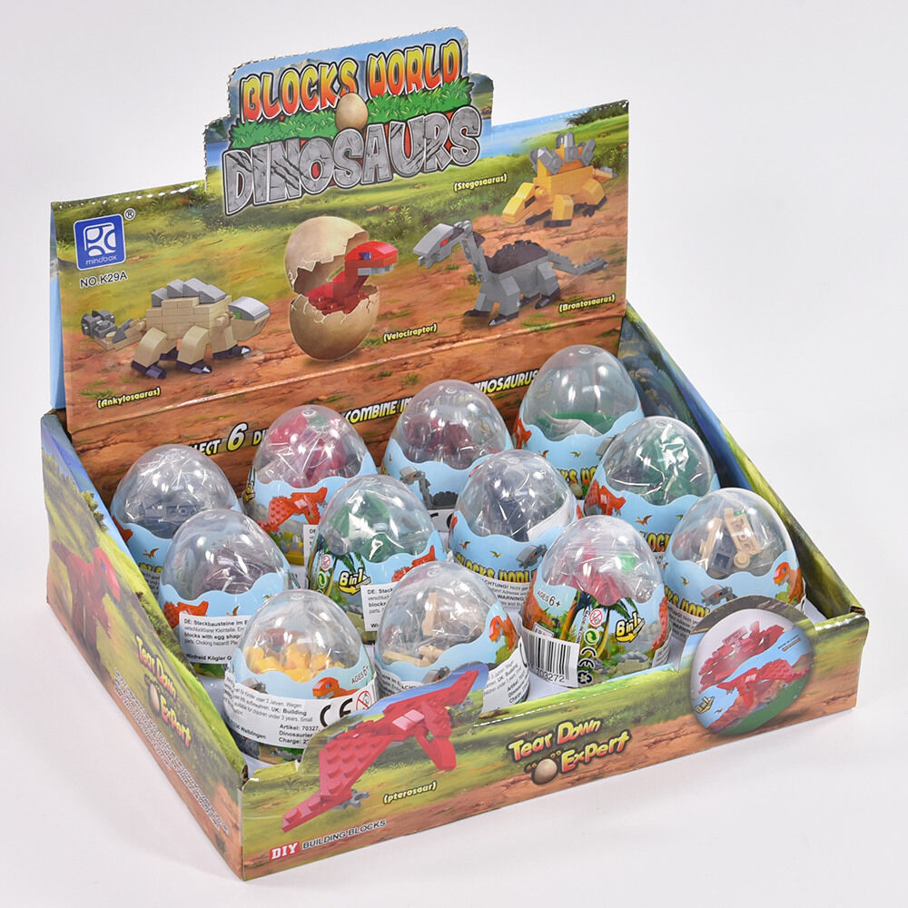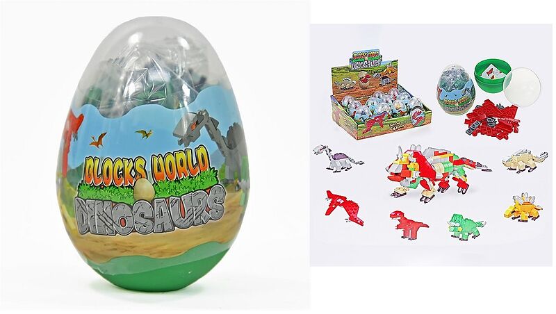 Grösse Ei: 5,5 x 5,5 x 8cm Material: Kunststoff 1 Dino-Baustein-Set im Ei aus 6 einzelnen Bausätzen lässt sich ein toller, grosser Dino zusammenbauen. Modell kann nicht gewählt werden, kommt nach Verfügbarkeit. Preis pro Ei