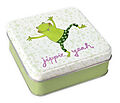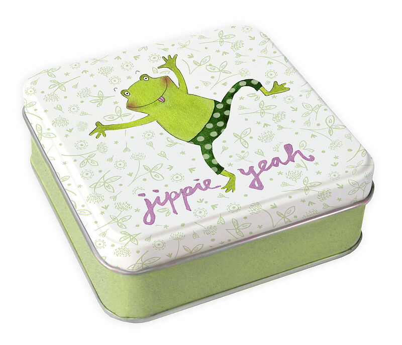 10 x 10 x 3.5 cm aus Blech Schöne Dose die vielseitig einsetzbar ist. Ob als Verpackung für ein kleines Geschenk oder als Aufbewahrung für Krimskrams, sie passt einfach immer.
