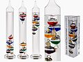 ganz nach dem physikalischen Grundprinzip: durch die Temperatur ändert die Flüssigkeitsdichte. Ein spannender Thermometer