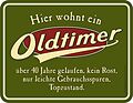Hier wohnt ein Oldtimer über 40 Jahre gelaufen... Blechschild