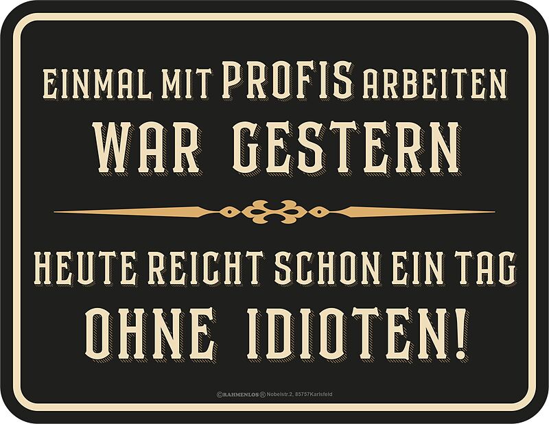 Mit Profis arbeiten war gestern Blechschild