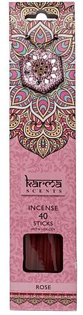 mit schönem Karma-Tisch-Dekohalter zum Einstecken von 7 Räucherstäbchen. Für entspannende spirituelle Momente. Lass deine Seele baumeln und geniesse das "jetzt" mit diesem magischen feinen Rosen-Duft. Lieferumfang: 40 Räucherstäbchen mit einem Karma- Stäbchenh...