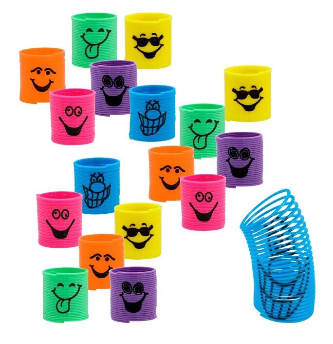 Ein Set voller fröhlicher Lauf-Spiralen in verschiedenen Farben und mit unterschiedlichen Gesichtern. In einer Tüte befinden sich 18 Spielzeuge, also genug, um sie bei einer Geburtstagsfeier oder einem Kinderfest zu verschenken. Auch sehr schön als Spielzeug f...