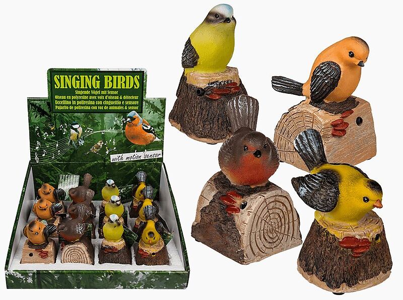 Was für eine schöne Begrüssung! Stellt man den süssen Vogel auf "on", begrüsst er einen mit fröhlichem Gezwitscher. Nachts werden ungebetene Gäste verpfiffen. 4-fach sortiert, Farbe nicht wählbar, kommt nach Lagerverfügbarkeit Grösse: ca. 10 cm, aus Polyresin ...