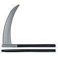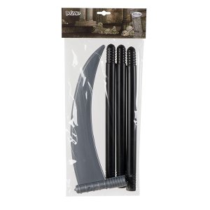 Die Sense besteht aus 4 Teile, der Klinge und 3 Griffen, welche aneinander geschraubt werden können, damit die Sense ihre Länge von ca. 101 cm erhält.