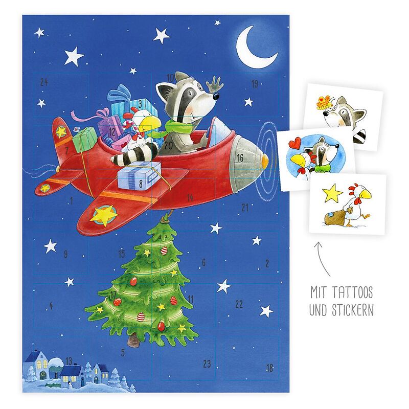 DIN A3 (29,7 cm x 42,0 cm) Der Adventskalender enthält als Überraschung, lustige Tattoos und Sticker zum sammeln.