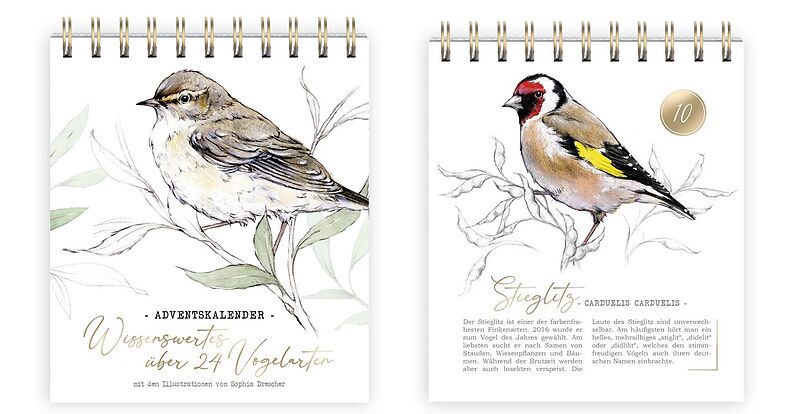 14.5 x 16.5 cm Tischaufsteller mit Spiralbindung Mit wissenswerten Infos über 24 Vogelarten