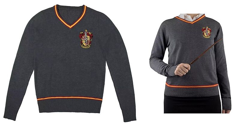 60 % Polyester + 40 % Baumwolle Gryffindor-Wappen auf der Vorderseite aufgestickt Weicher Strick V-Ausschnitt Material: 60 % Polyester, 40 % Baumwolle Grösse S