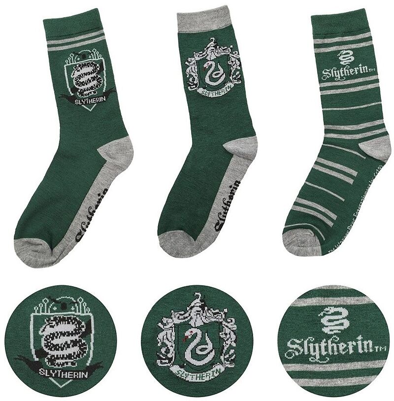 Packung mit 3 Paar Slytherin Socken Einheitsgröße - Von 35 bis 45 Zusammensetzung: 70% Polyester, 20% Nylon, 10% Elasthan Einheitsgröße: von 35 bis 45. Offizielle Harry Potter-Lizenz.