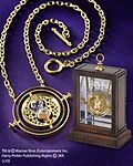 wird getragen im Film von Hermione Granger Durchmesser ca. 3,5cm, Kette ca. 50cm 24 Karat vergoldet Die Ringe drehen sich auf verschiedenen Achsen. In der Mitte ist eine Miniatur-Sanduhr. wird im schönen Holzdisplay geliefert.