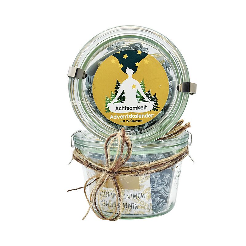 Adventkalender für eine achtsame Adventszeit. Weckglas gefüllt mit 24 Rubbelkarten.Achtsamkeit in 24 kleine Übungen verpackt, damit die Weihnachtszeit entspannt bleibt. Als Geschenk für Kunden, Freunde ,Mitarbeiter, Kollegen und alle die zwischendurch ein bisc...