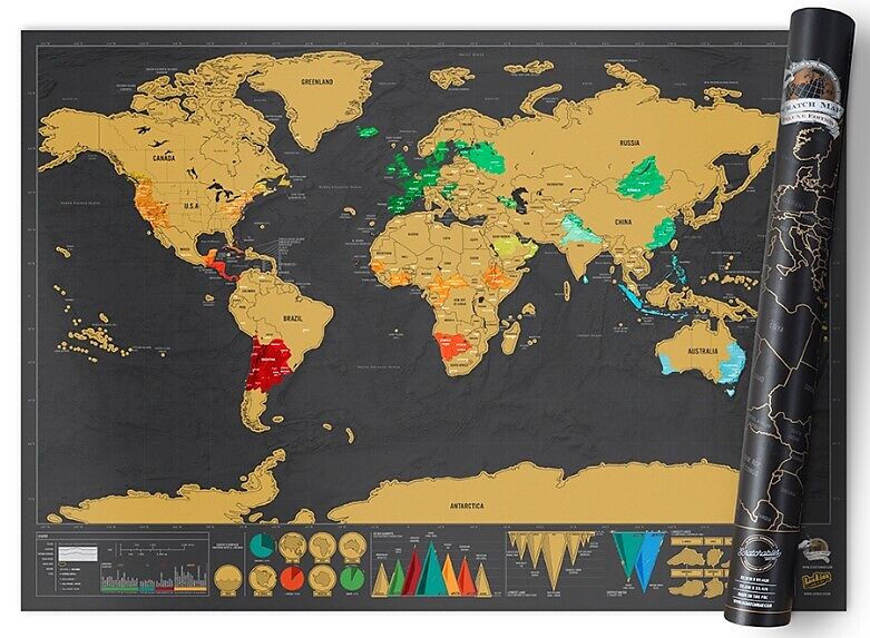 Rubbel alle Länder auf, welche du schon einmal besucht hast und schaffe so eine einmalige Erinnerung Karte und Verpackung vollständig FSC zertifiziert, für 100% Nachhaltigkeit Masse: 61 x 81 cm Material: Papier