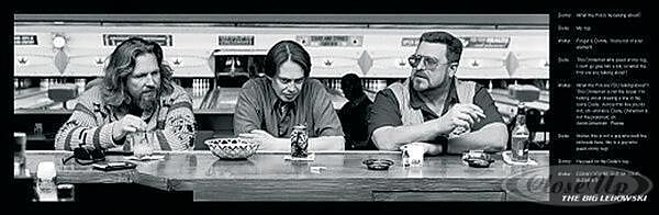 Geniales Poster mit Zitaten aus "The Big Lebowski", dem Kultfilm aus den 90er-Jahren. Donny, Walter und natürlich der "Dude" sitzen im Bowling-Club und philosophieren. Auf dem Poster: Sprüche der Jungs. Regisseur: Joel & Ethan Coen Größe: Breite 91,5 cm Höhe 3...