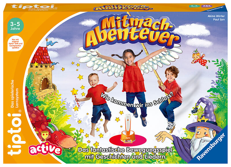 "Mitmach-Abenteuer" macht Bewegung zum Kinderspiel. tiptoi leitet durch spannende Abenteuer-Geschichten mit lustigen Charakteren. Eine verschlossene Tür versperrt den Weg: Wie lässt sie sich nur öffnen? Gemeinsam suchen 1 bis 6 Kinder nach einer Lösu...