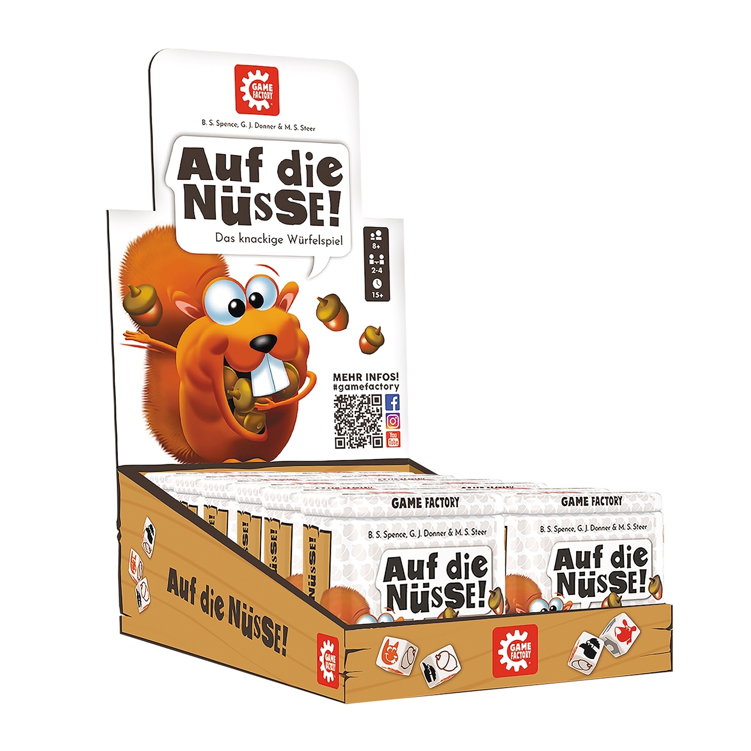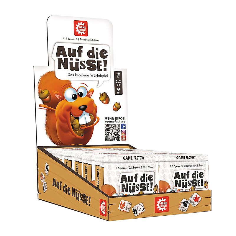 In diesem knackigen Würfelspiel geht es um die Nuss! Sammle möglichst viele Nüsse, doch sei nicht zu gierig, sonst lassen die Mitspieler ihre Hunde los.
