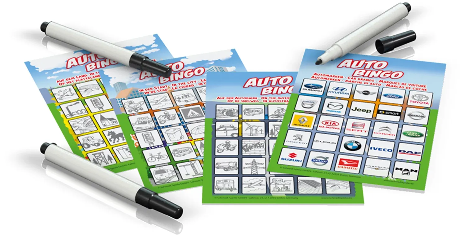 Schmidt Spiele Auto-Bingo Bring-Mich-Mit-Spiel in der Metalldose Mit Auto Bingo vergeht die Fahrzeit wie im Fluge, denn während der Suche nach den passenden Motiven auf den Bingo-Karten vergessen die Spieler schnell, wie lange sie schon unterwegs sind. Ein ide...