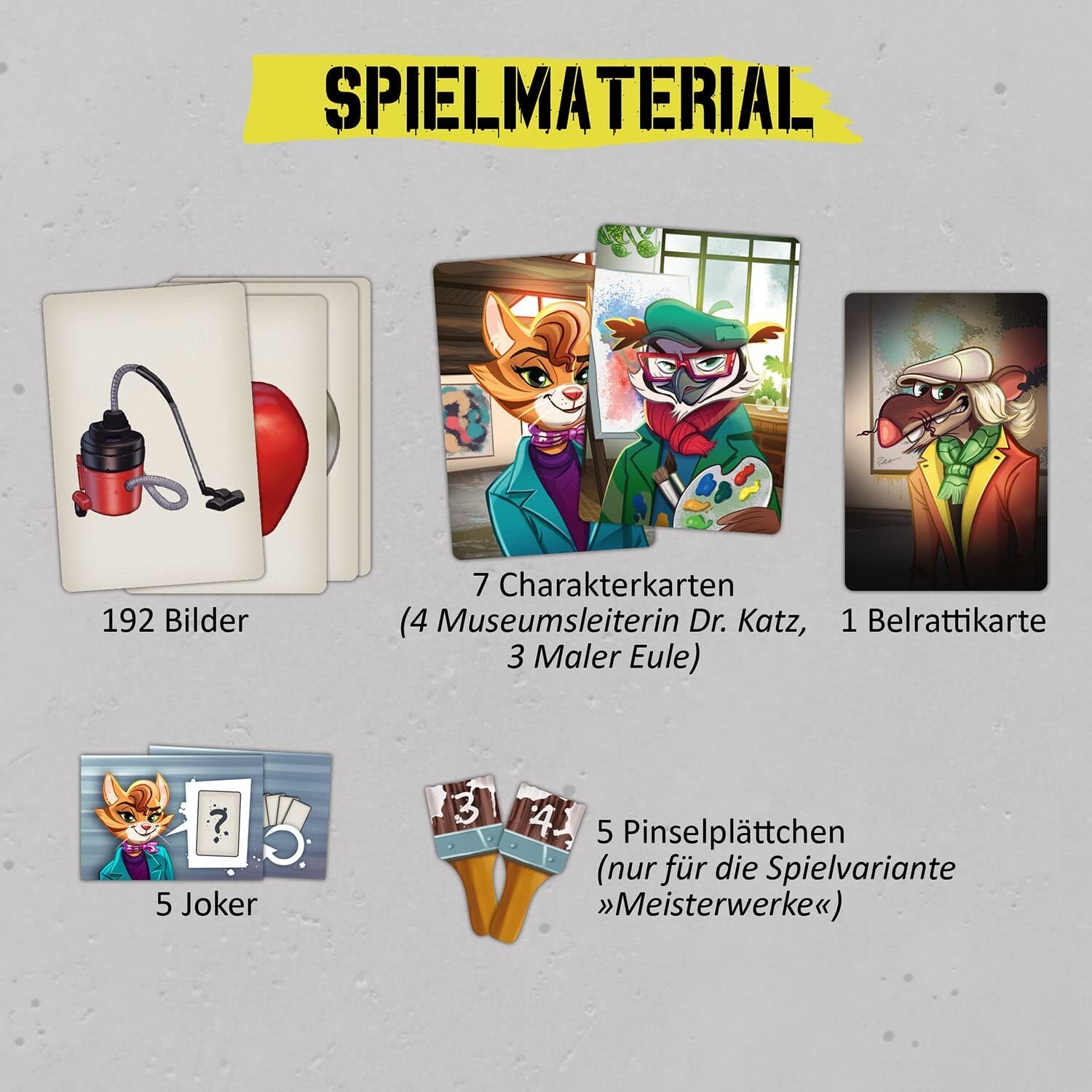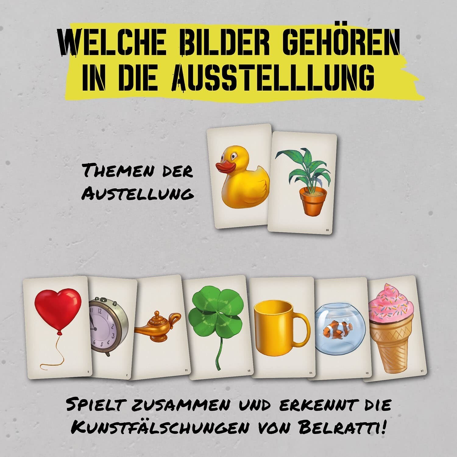 Kooperatives Bild-Assoziationsspiel mit einfachen Regeln. - Kommunikatives Familienspiel in zwei Teams könnt ihr gemeinsam Belrattis Kunstfälschungen enttarnen? - Das mehrfach ausgezeichnete Kartenspiel vollständig neu illustriert. - 192 illustrierte Bildkarte...