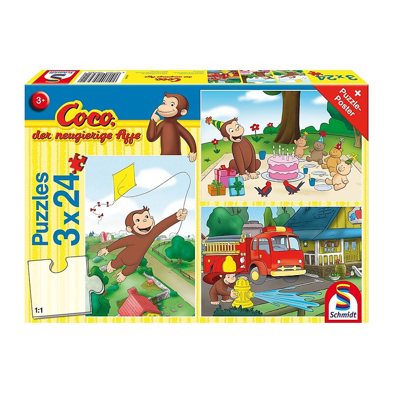 Coco, der neugierige Affe, Spaß mit Coco, 3x24 Teile (Puzzle)