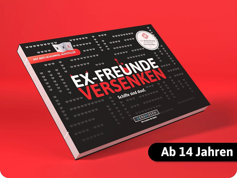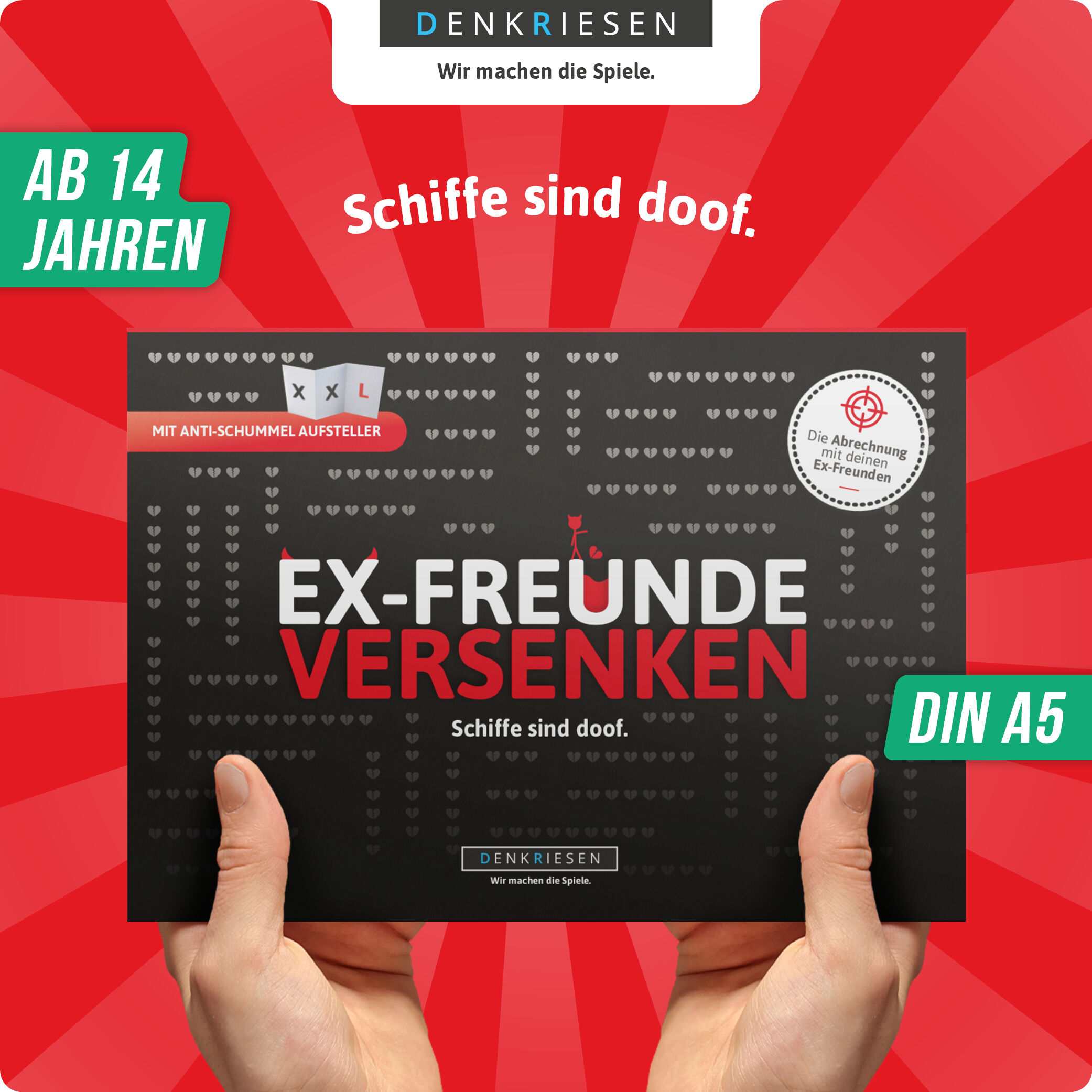 Wir haben das altbekannte und etwas eingestaubte Schiffe versenken in coolem Design aufgepeppt und revolutioniert. Das Ergebnis ist EX-FREUNDE VERSENKEN. Das Highlight = Es werden nicht Schiffe, sondern Ex-Freunde versenkt.
