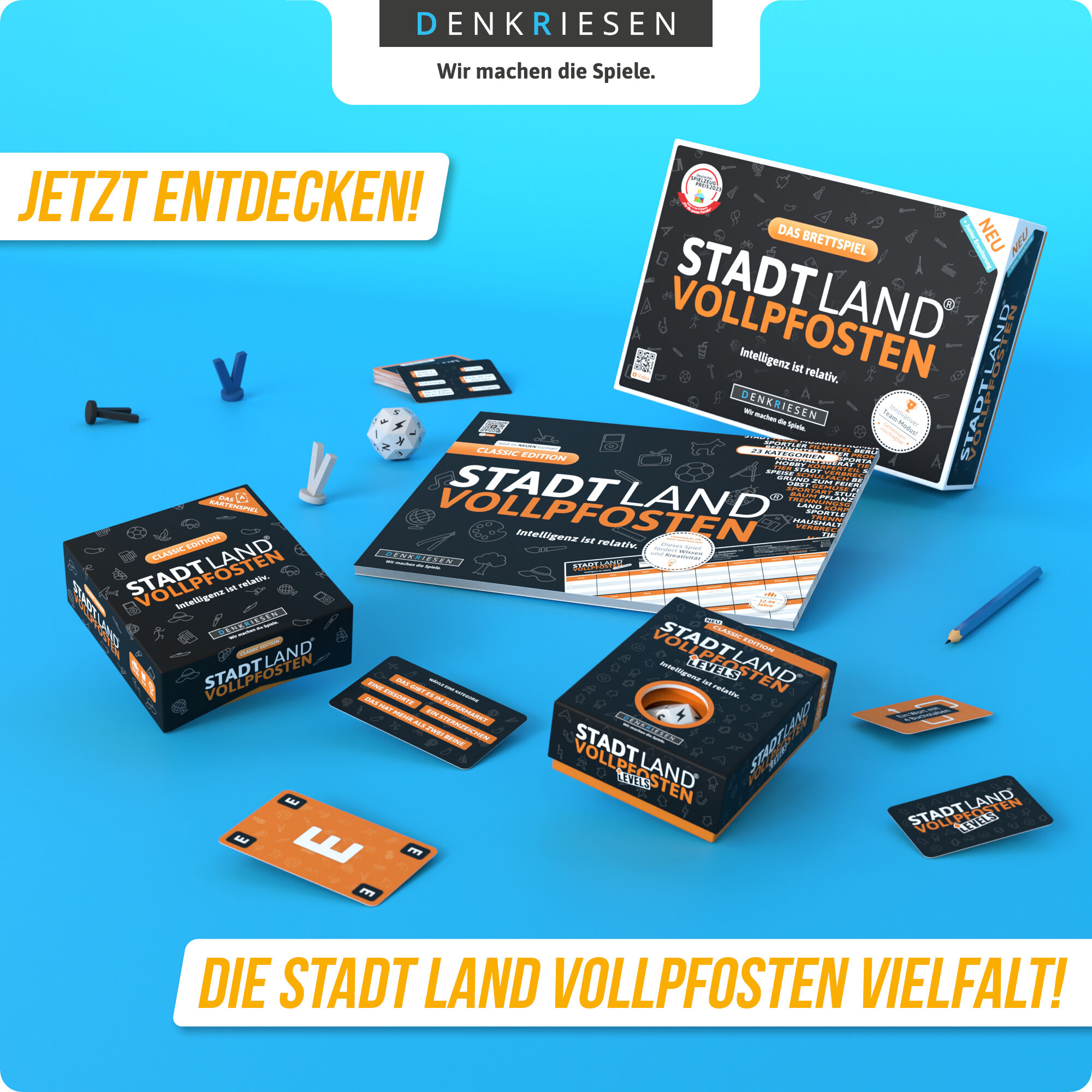 DENKRIESEN - STADT LAND VOLLPFOSTEN® - Das Kartenspiel - URLAUB EDITION - ''Meer im Kopf.'' Die urlaubsreife Edition des offiziellen Kartenspiels von STADT LAND VOLLPFOSTEN mit 120 Spielkarten.200 kreative und lustige Kategorien für einen unvergesslichen Urlau...