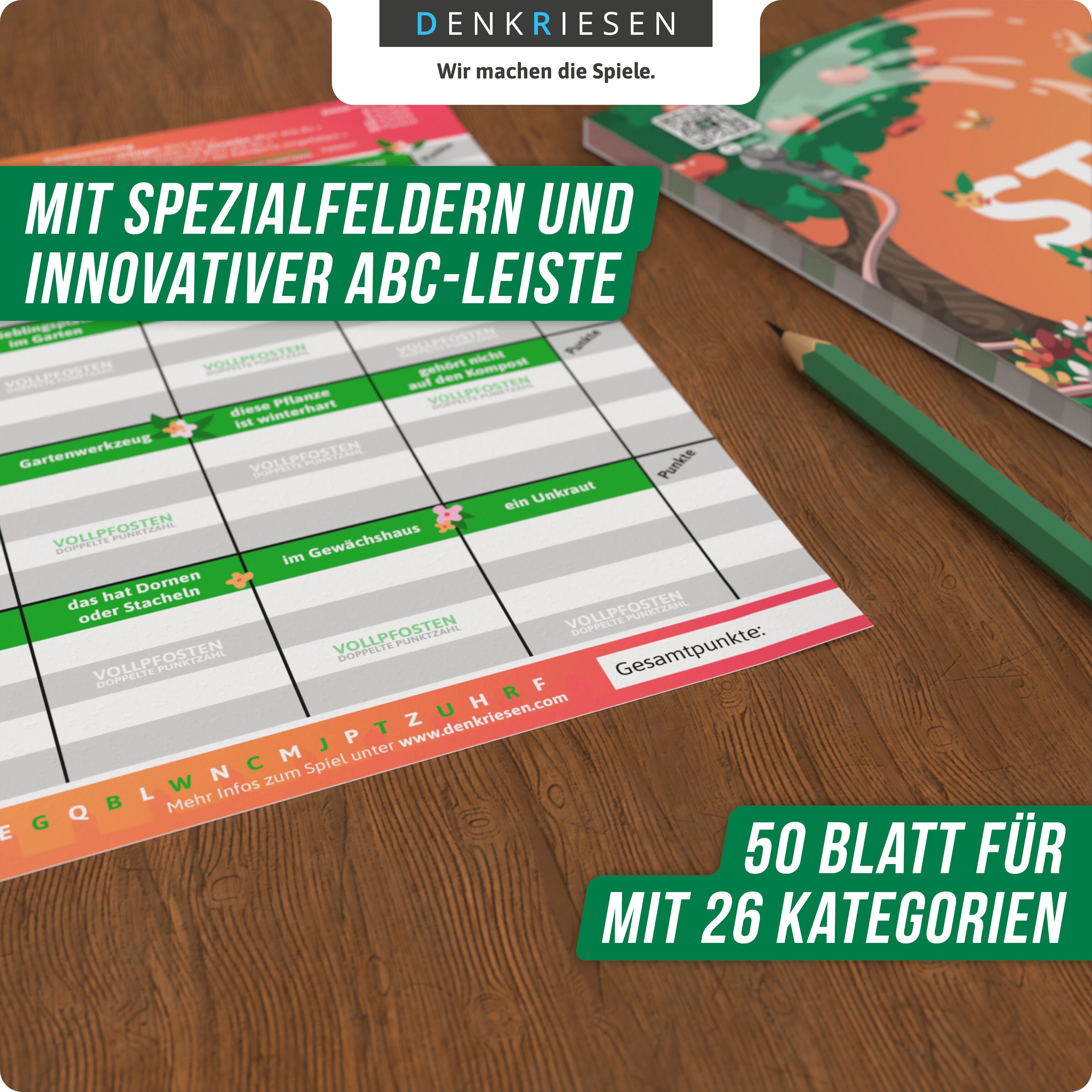 STADT LAND VOLLPFOSTEN® - GARTEN EDITION - ''Alles im Grünen.'' - A4 Die blumige Edition des Kultspiels STADT LAND VOLLPFOSTEN® rund ums Thema Pflanzen und Garten. Dieser Spielblock mit 26 kreativen und lustigen Kategorien bringt jeden Hobbygärtner und sogar G...