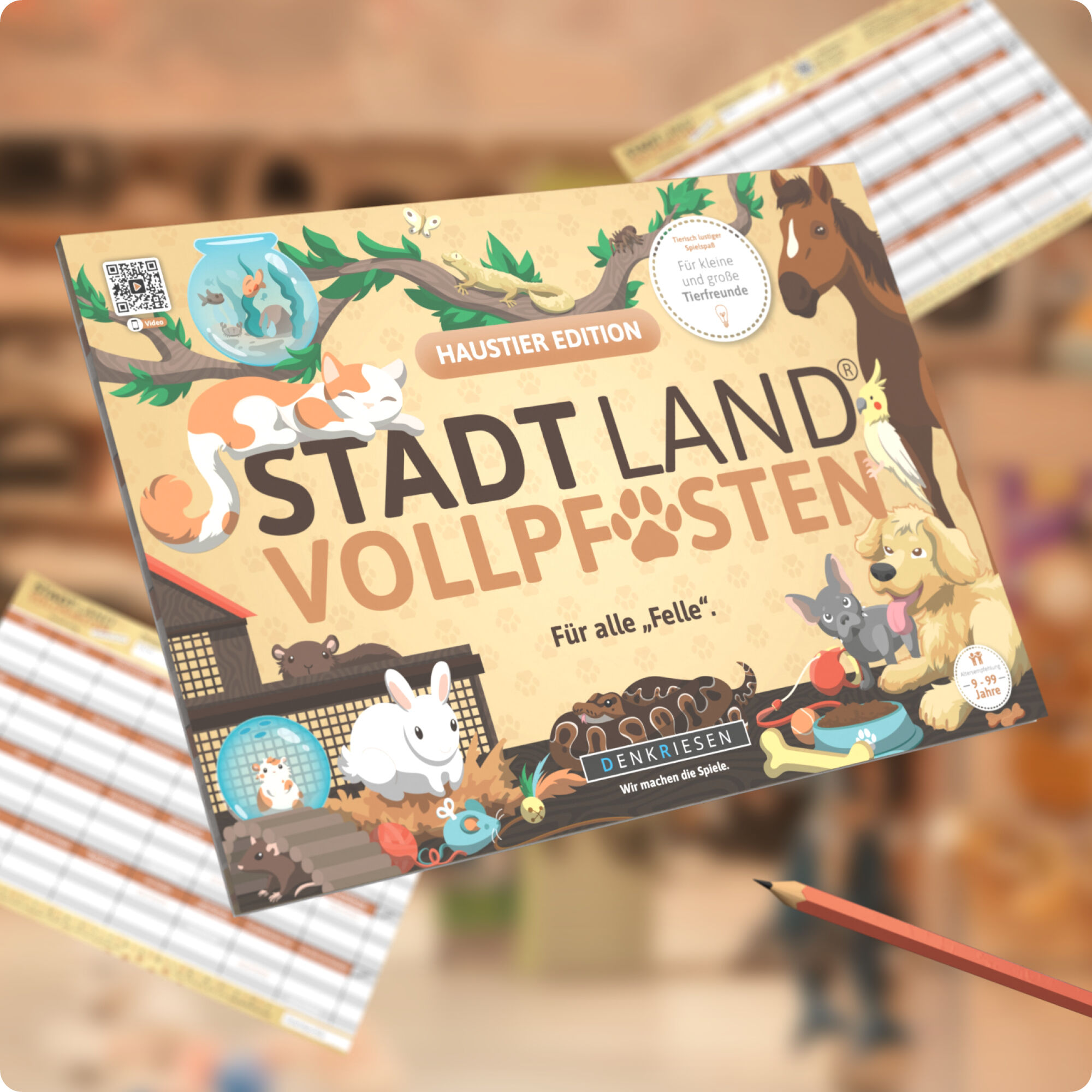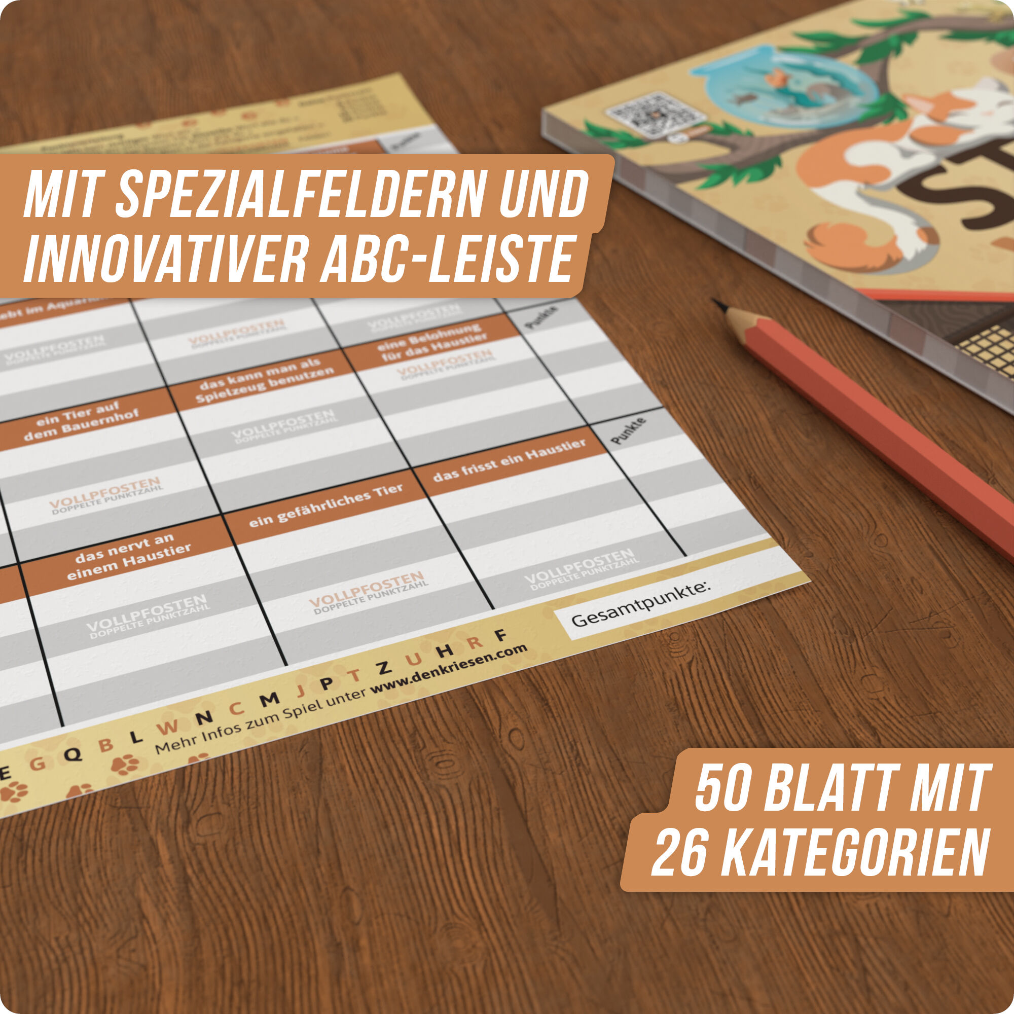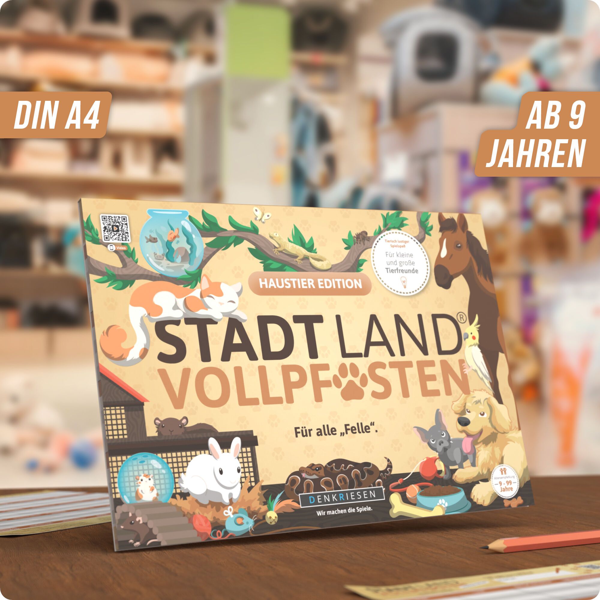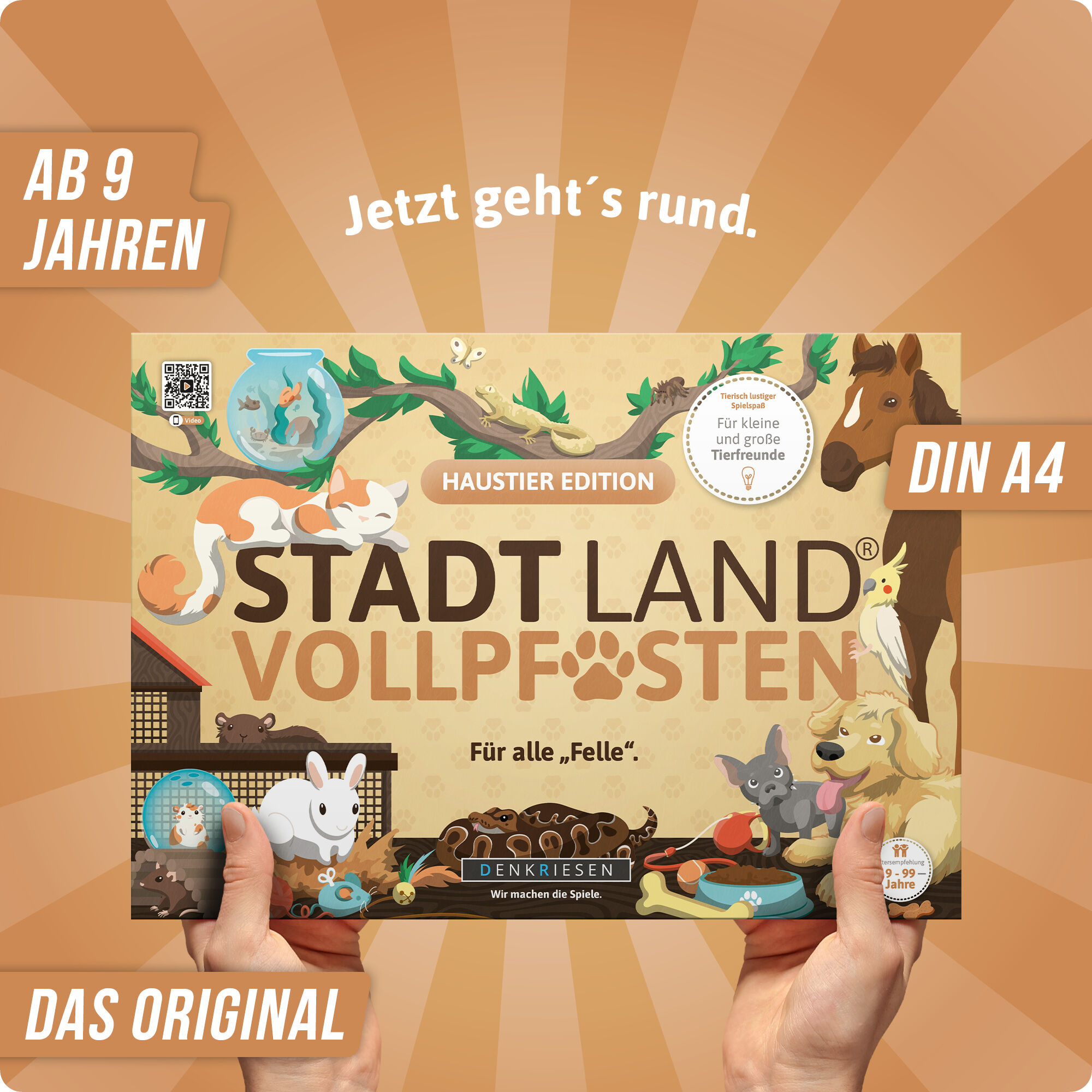STADT LAND VOLLPFOSTEN® - HAUSTIER EDITION - ''Für alle ''Felle.'' - A4 Die flauschige Edition des Kultspiels STADT LAND VOLLPFOSTEN® rund ums Thema Haustiere und Besitzer. Der ultimative Spielblock mit 26 kreativen und lustigen Kategorien sorgt garantiert für...