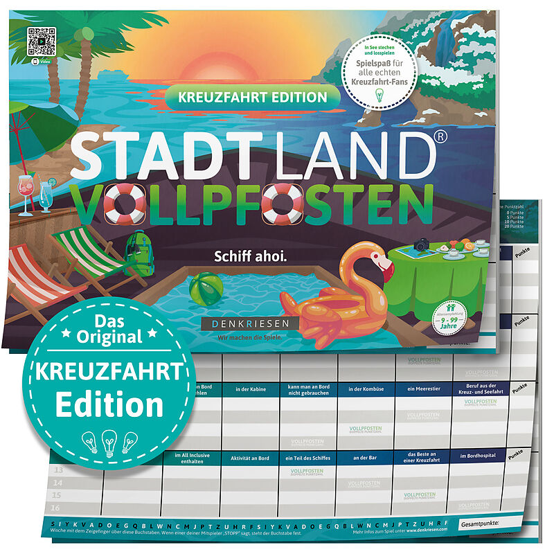 Die nautische Edition des Kultspiels SLV rund ums Thema Urlaub auf hoher See. Dieser Spielblock mit 26 kreativen und lustigen Kategorien bringt Landratten und sogar Matrosen ins Schwitzen. Spaß garantiert