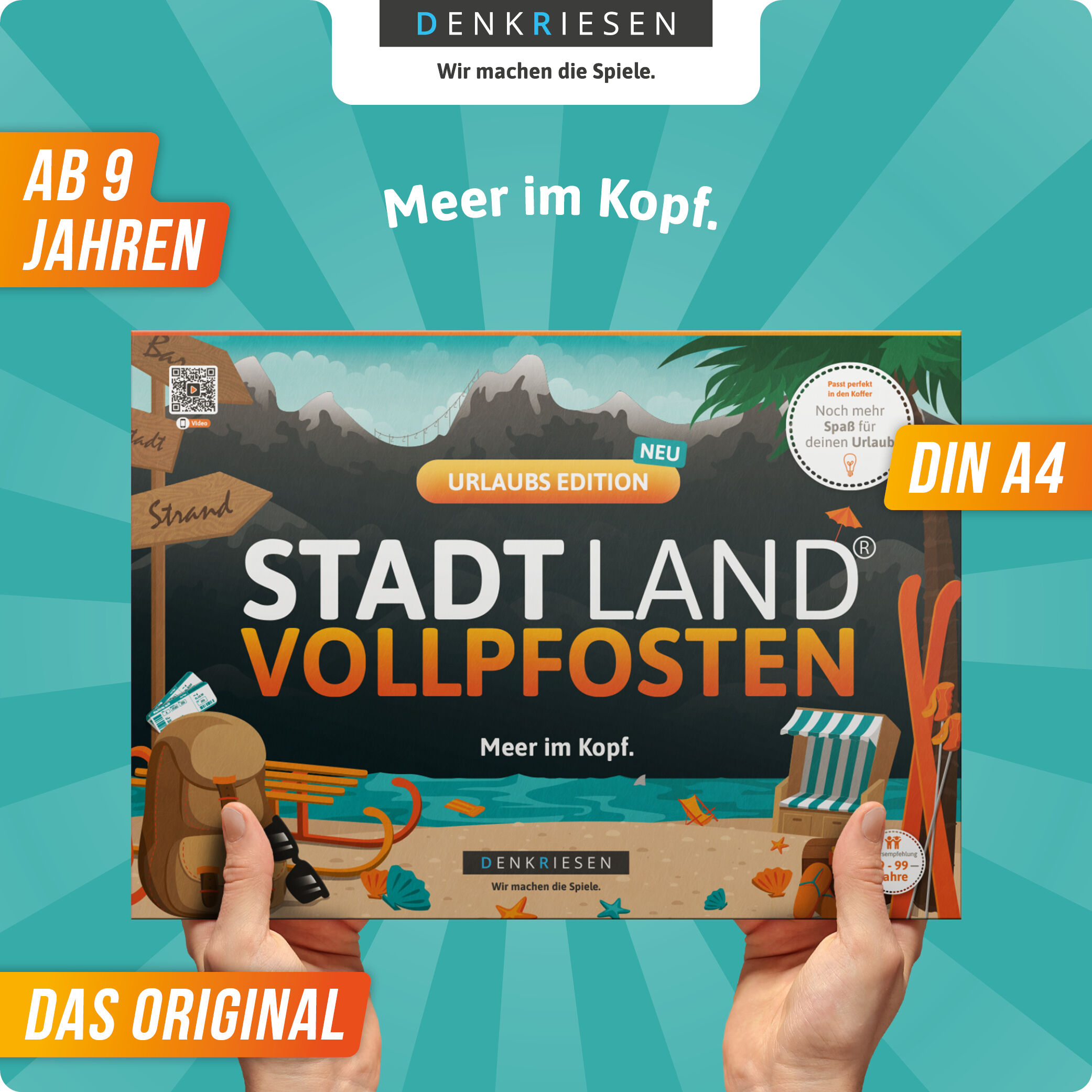 STADT LAND VOLLPFOSTEN® - URLAUBS EDITION - Meer im Kopf. Die urlaubsreife Edition des Kultspiels STADT LAND VOLLPFOSTEN rund ums Thema Ferien und Reisen. Der ultimative Spielblock mit 29 kreativen und lustigen Kategorien für einen unvergesslichen Urlaub. Spaß...