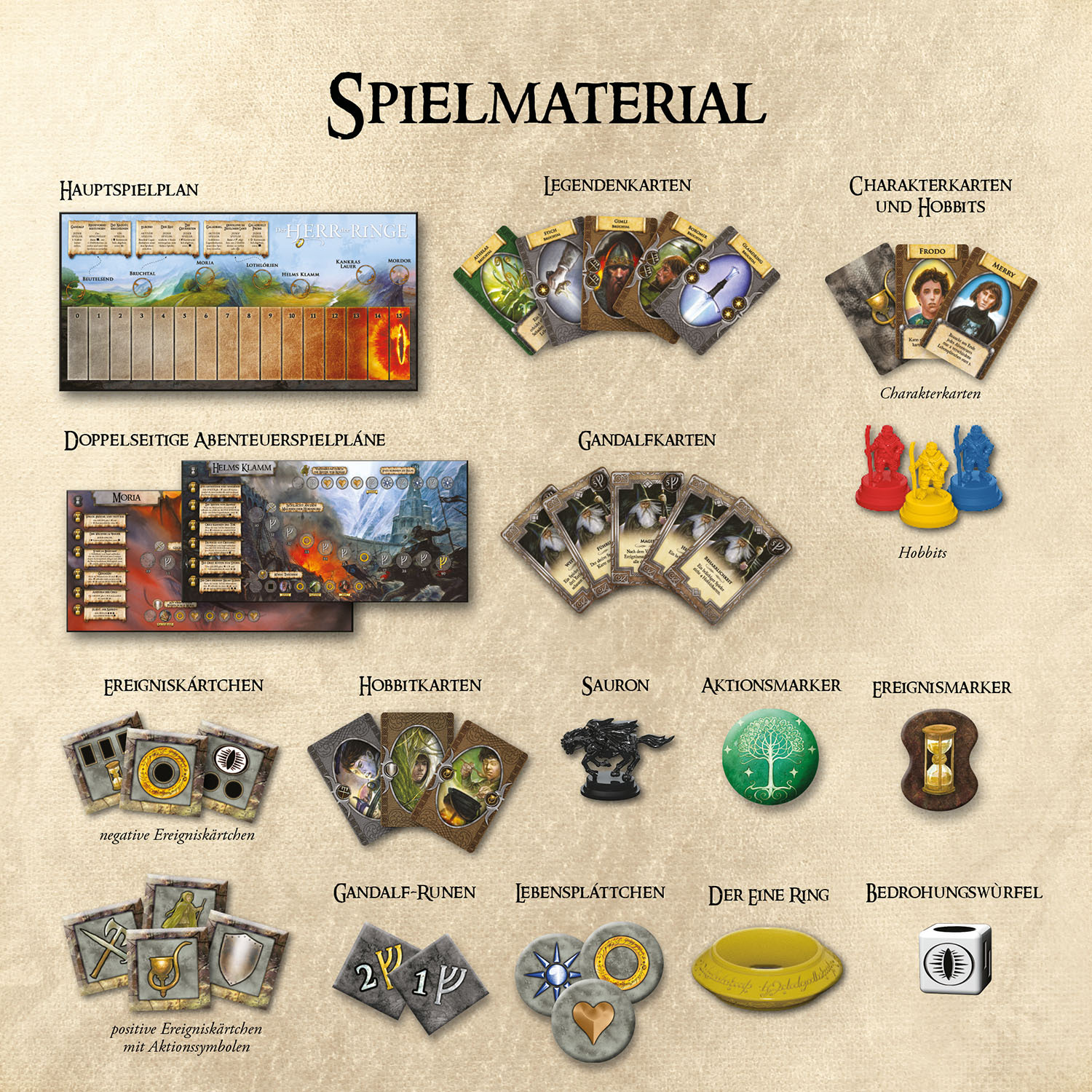 Der Herr der Ringe - Jubiläumsedition Gemeinsam gegen Sauron! Auf eine fantastische Reise voller Gefahren begeben sich die Spieler bei diesem kooperativen Spiel. In den Rollen der mutigen Hobbits Frodo, Sam, Merry und Pippin müssen sie Mittelerde und das Auenl...