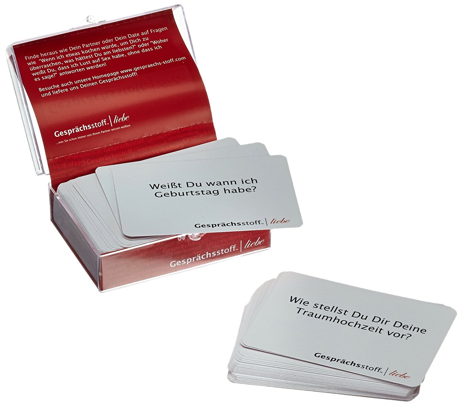 Gesprächsstoff LIEBE ...was Sie schon immer von Ihrem Partner wissen wollten. Wie gut kennst Du Deinen Partner wirklich - oder die Person, die Du vielleicht gerade im Begriff bist zu heiraten? Wie gut hast Du Dein neues Date eingeschätzt? Diese Gesprächsstoff-...