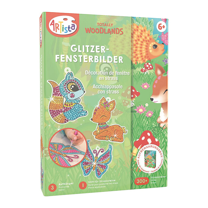 Mit dem Glitzer-Fensterbilder Set können ganz einfach wunderschöne Fensterbilder erstellt werden. Die süßen Motive, das Eichhörnchen, das Reh oder der Schmetterling sind bunt und vorbedruckt, zeigen an wo die Glitzersteine hingehören, und sind selbstklebend. E...