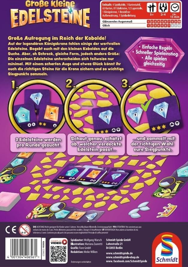 Große kleine Edelsteine Große Aufregung im Reich der Kobolde! Auf der legendären Königskrone fehlen einige der wertvollen Edelsteine. Begebt euch mit den kleinen Kobolden auf die Suche. Aber, oh Schreck, gleiche Form, jedoch andere Größe: Die einzelnen Edelste...