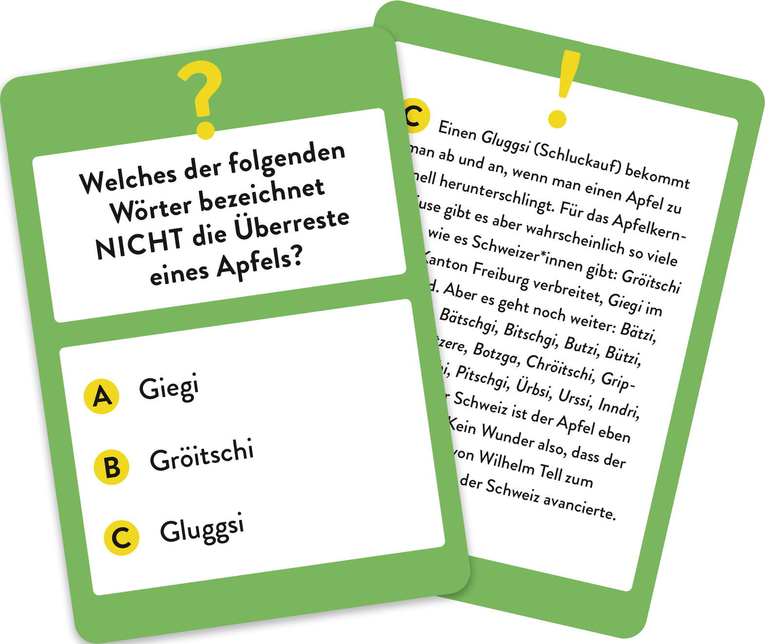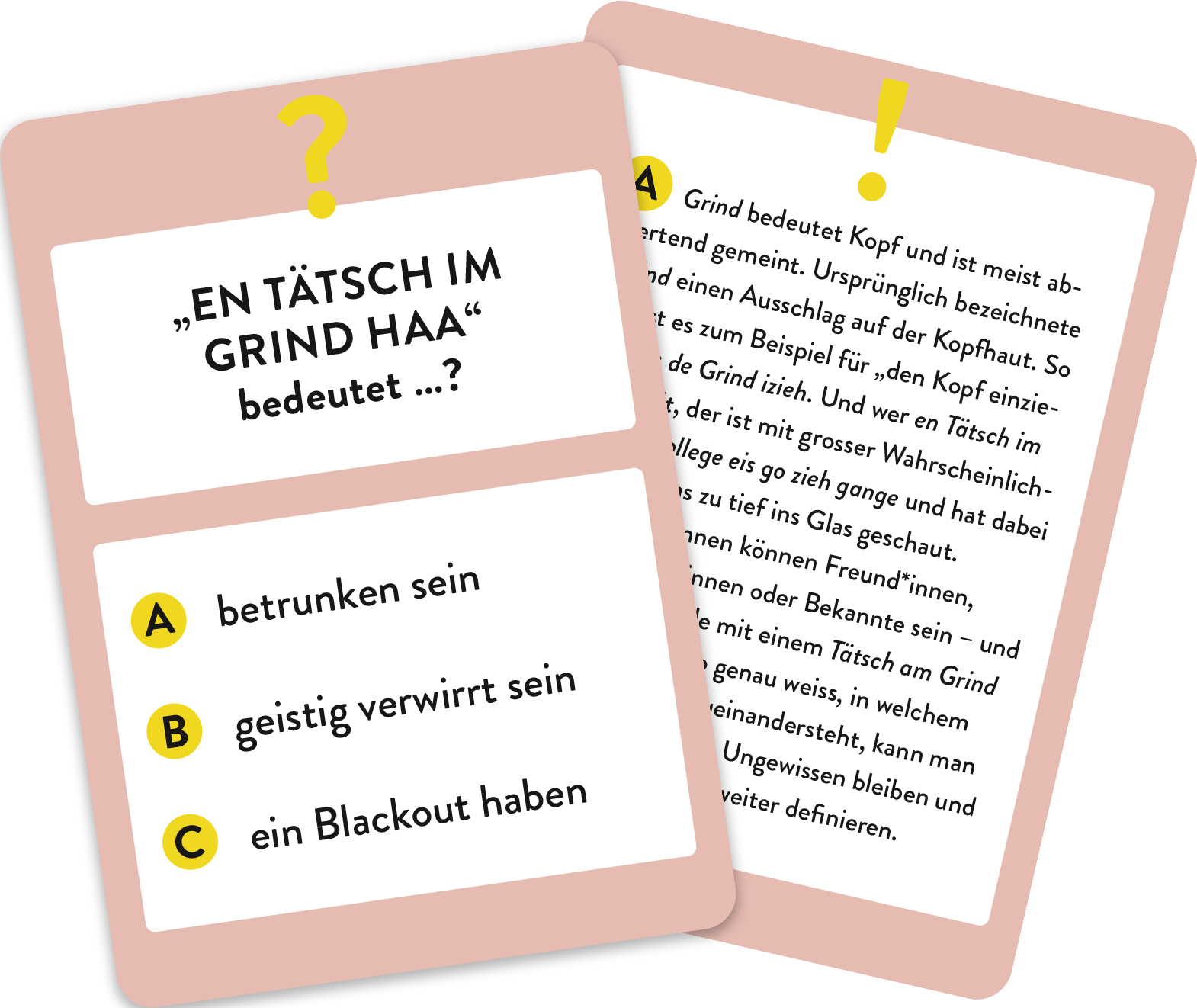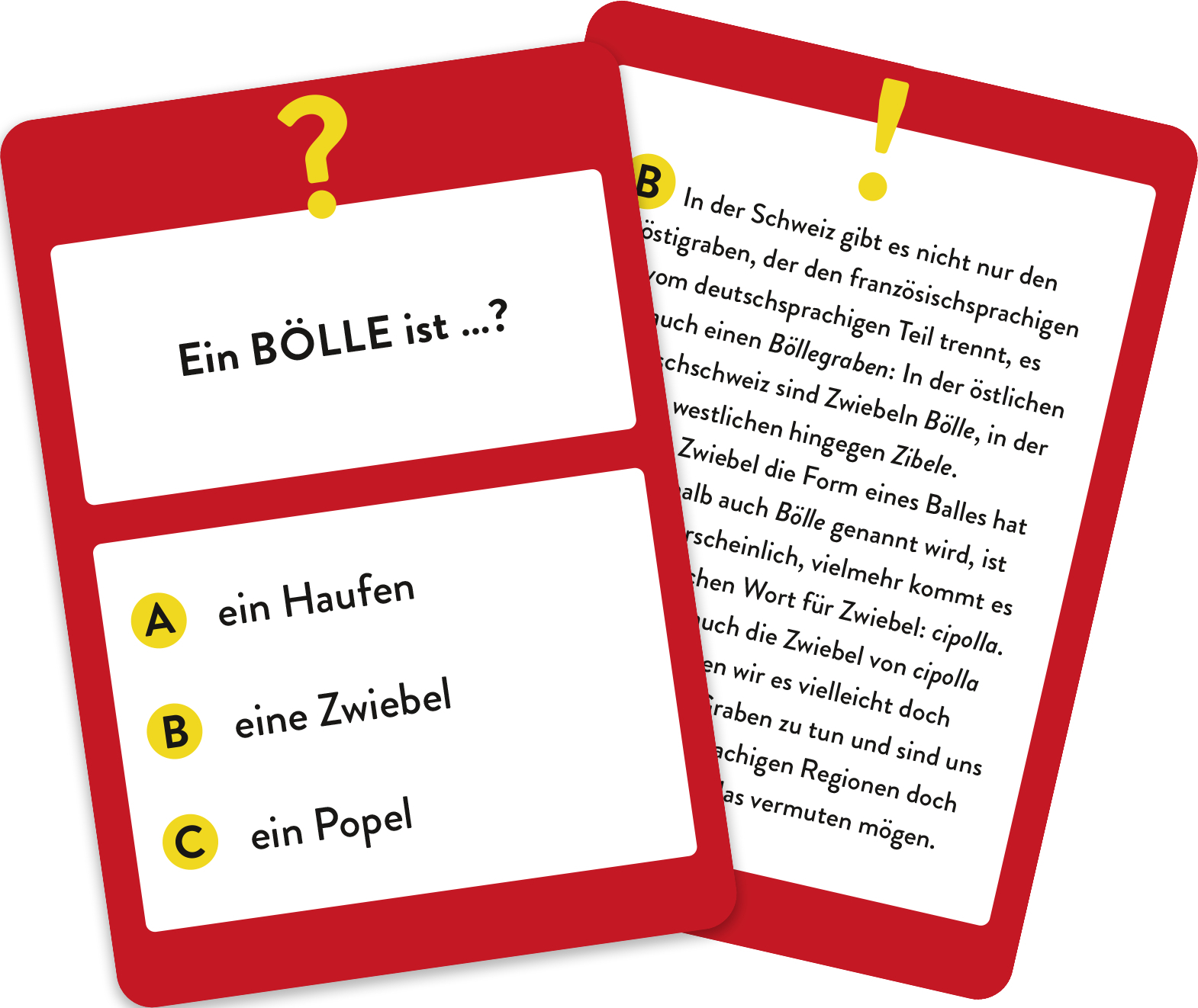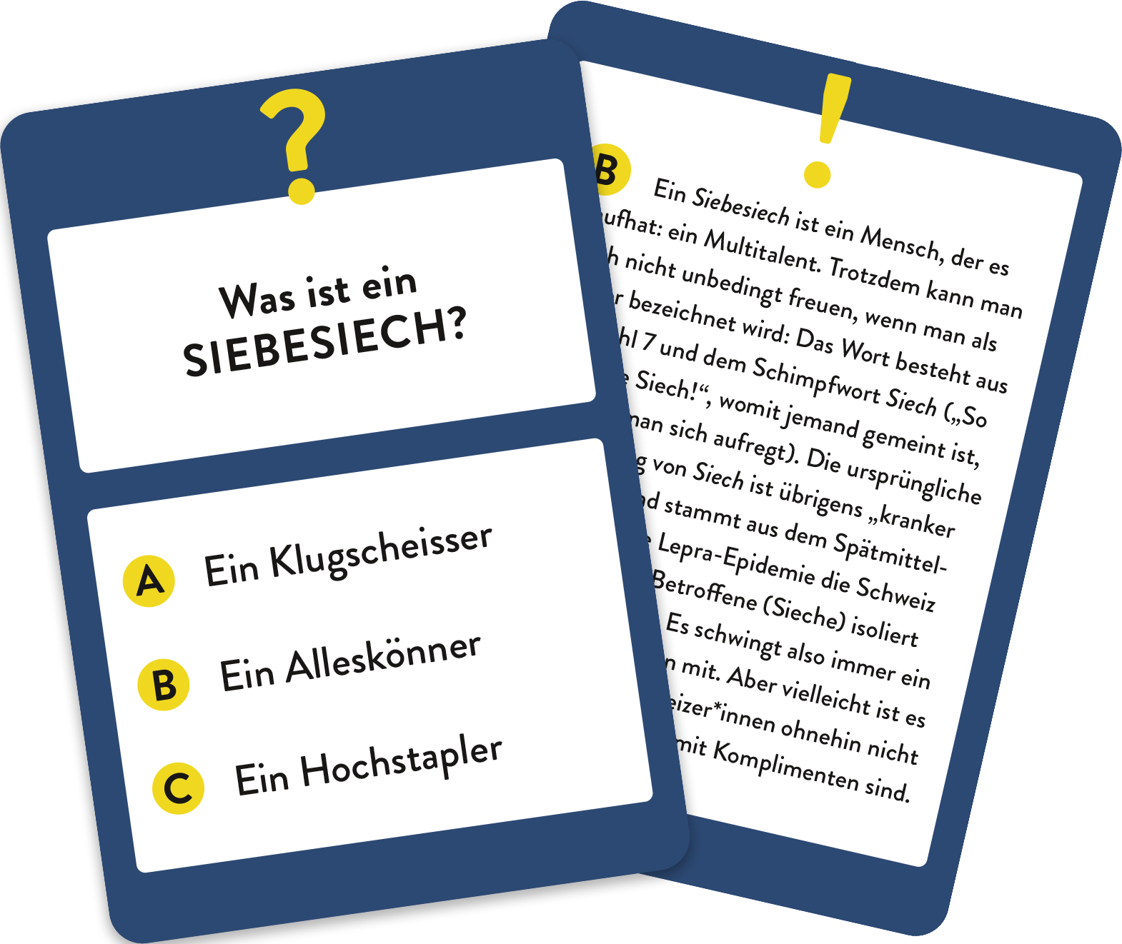 Lustiges Quiz-Kartenspiel um Dialekt-Begriffe aus der Schweiz Schweizerdeutsch als fröhliches Ratespiel im Spielkartenformat 50 urige, lustige oder skurrile Schweizer Begriffe Ideal als Reise-Spiel, Andenken oder Mitbringsel zum Spieleabend Quiz Kartenspiel S...