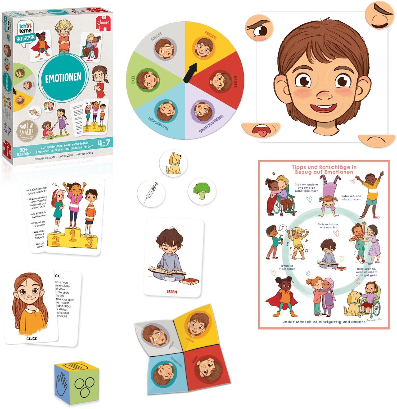 Mit dem Spiel Ich lerne entdecken: Emotionen entdecken Kinder ab 4 Jahren auf spielerische Weise verschiedene Emotionen und Konfliktlösungen kennen, und fördern positives Denken und ihre Empathie. Mit 20 Aktivitäten.