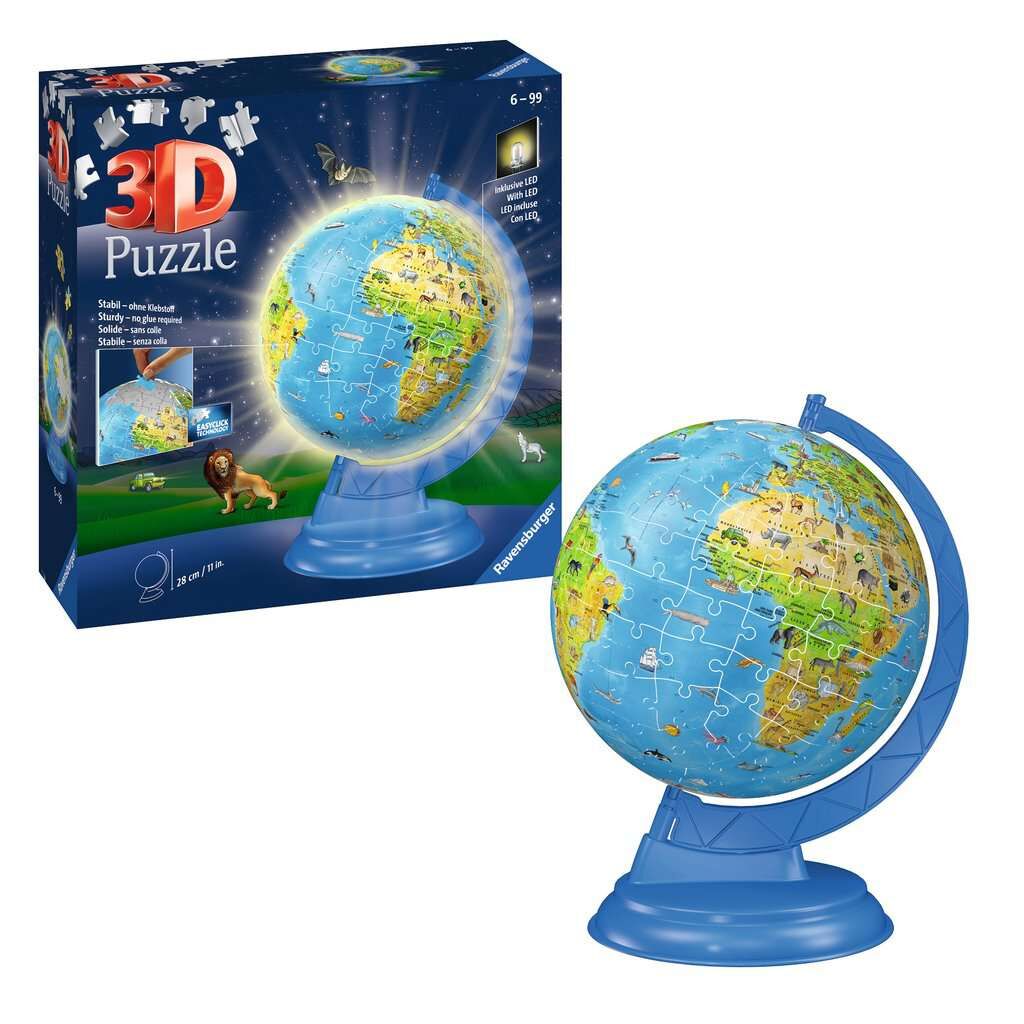 Ravensburger 11274 Puzzle Kinderglobus mit Licht 180 Teile Von Afrika nach Malaga Von Grönland nach Galapagos Mit diesem 3D Puzzle in der Nacht Edition macht Geografie jetzt richtig Spaß. Puzzleteil für Puzzleteil entdecken Kinder die Welt # und dank der neuen...