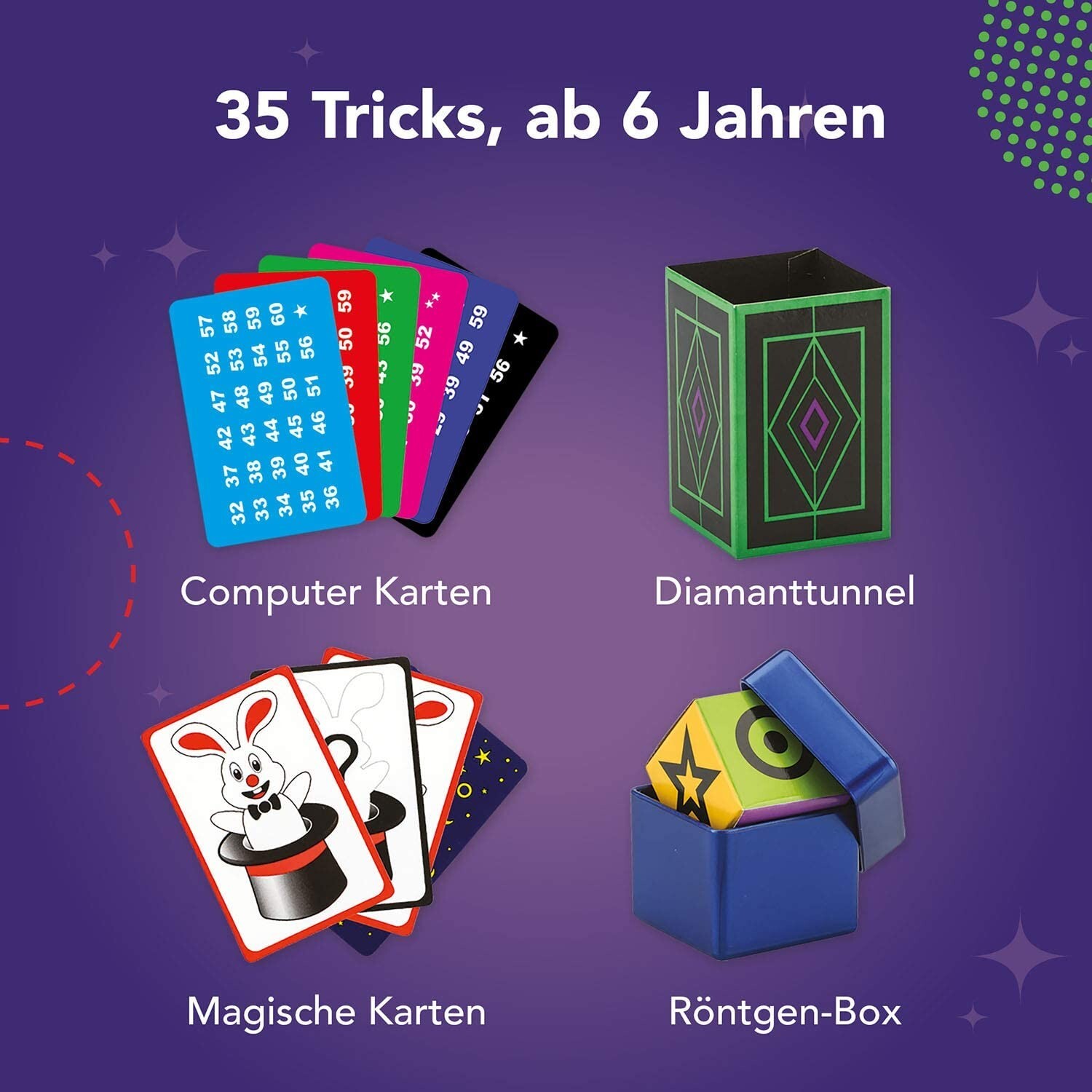 Anleitungskonzept mit aufbauendem Schwierigkeitsgrad. - Spielerischer Einstieg ins Zaubern für Kinder ab 6 Jahren. - 25 beeindruckende Illusionen von einfach bis anspruchsvoll. - Mit tollem Zauberhut, Plüschkaninchen und vielen weiteren Zauberutensilien. Zaube...