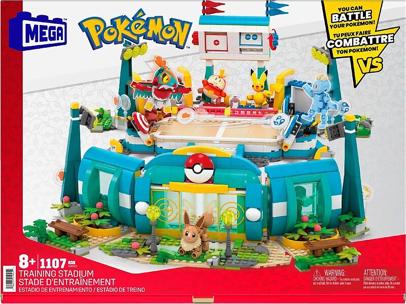 MEGA Pokémon Trainingsstadion Pokémon-Kämpfe mit der Trainingsarena nachstellen! Trainer können die Arena bauen und dann die integrierten Starter nutzen, um gegen ihr Pokémon in der Arena zu kämpfen. Anschließend können sie die Kurbel drehen, um das Jubeln der...