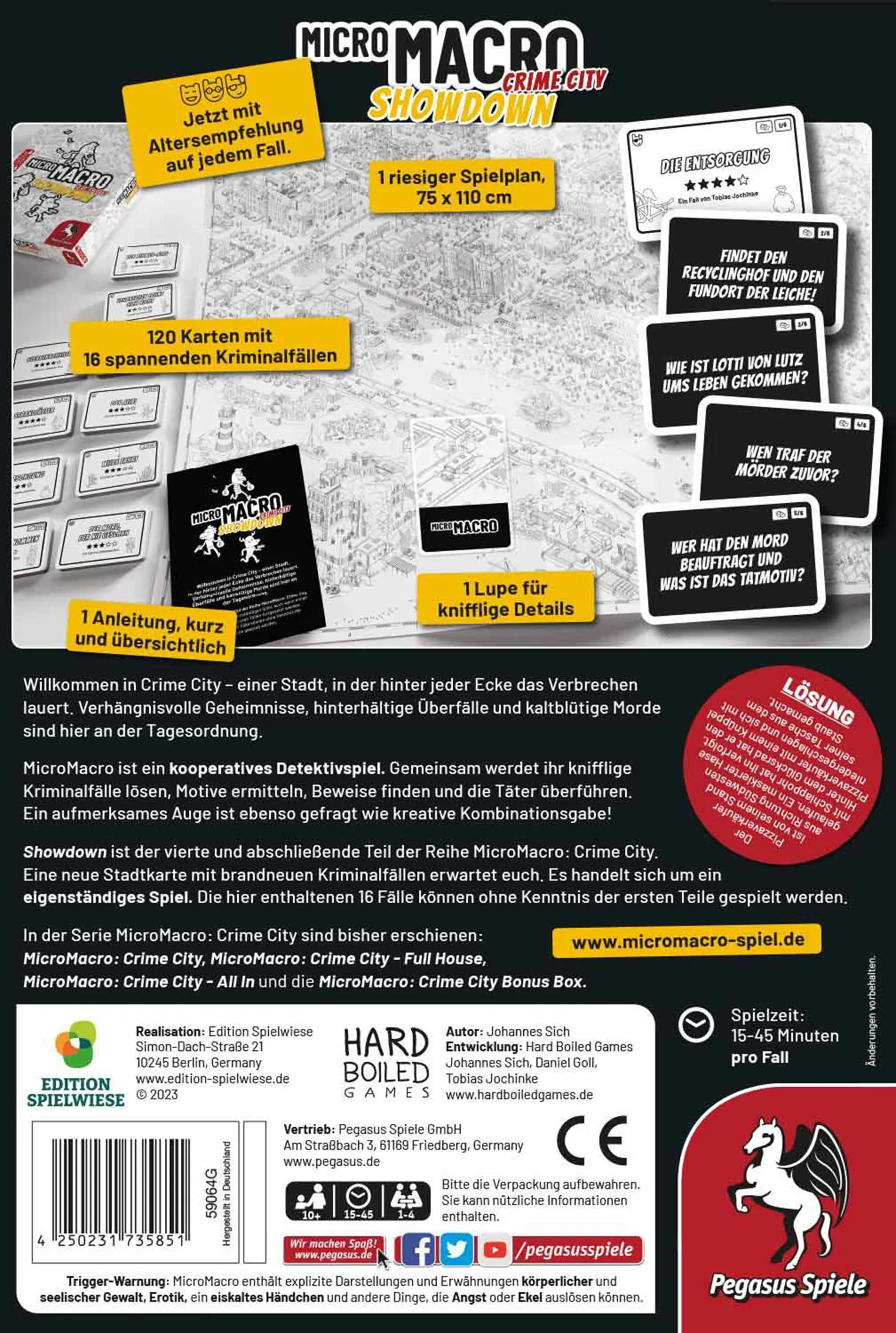 Willkommen in Crime City - einer Stadt, in der hinter jeder Ecke das Verbrechen lauert. Verhängnisvolle Geheimnisse, hinterhältige Überfälle und kaltblütige Morde sind hier an der Tagesordnung. MicroMacro ist ein kooperatives Detektivspiel. Gemeinsam werdet ih...