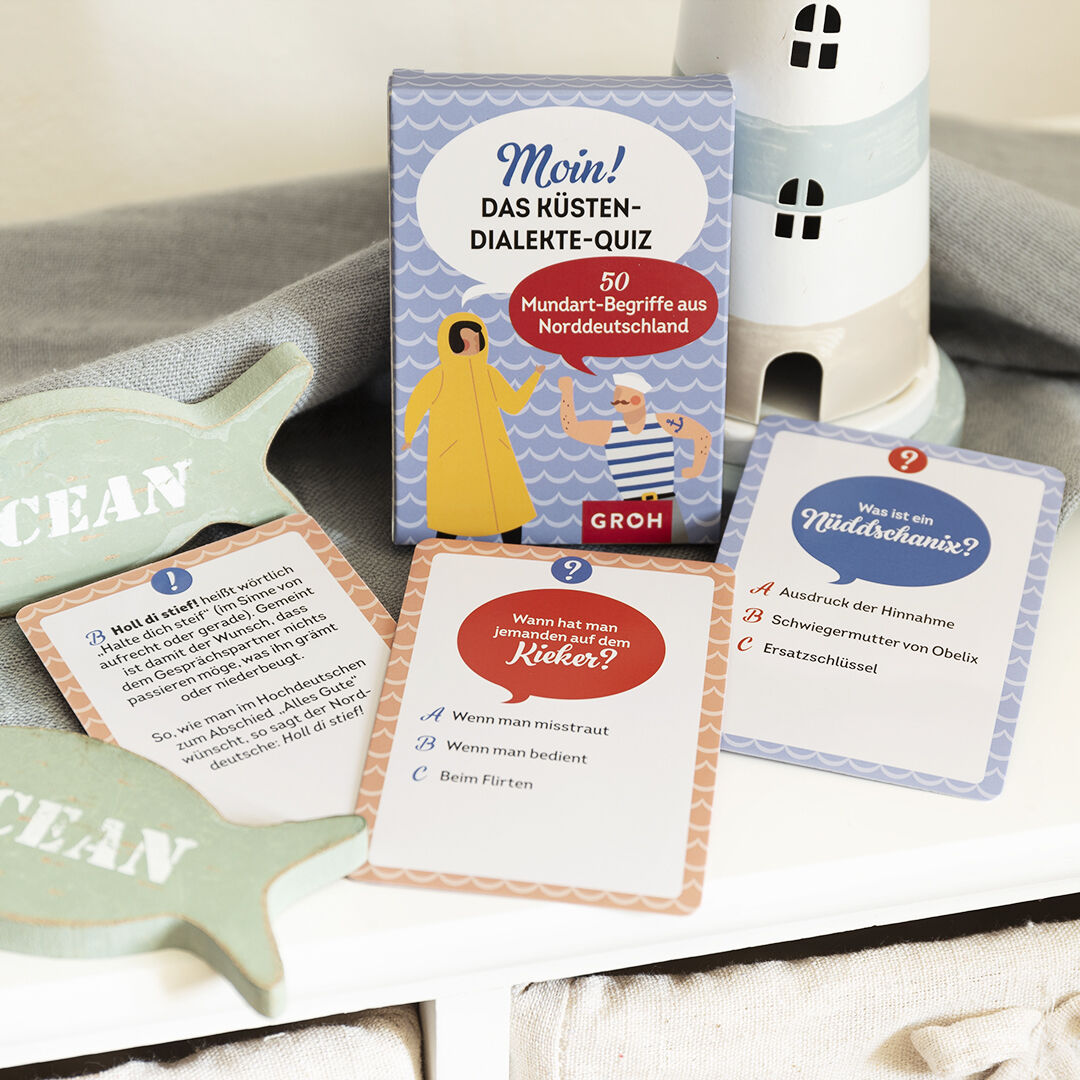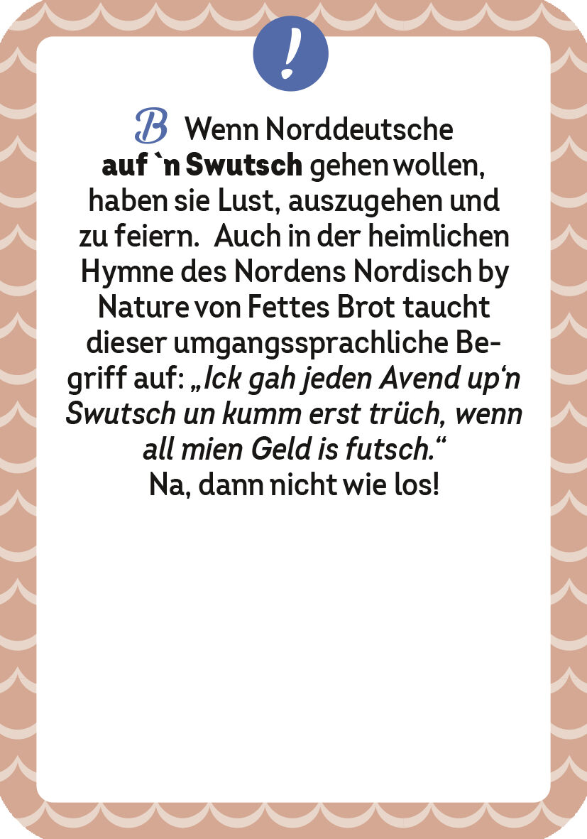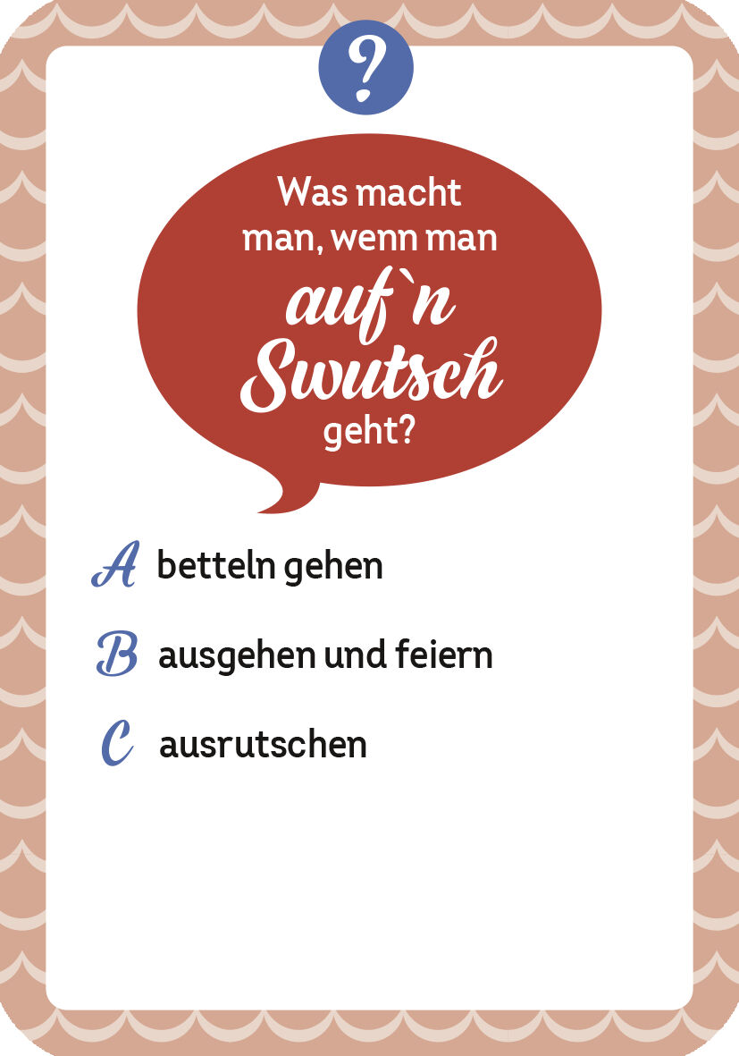 Witziges Quiz-Kartenspiel rund um die norddeutsche Mundart Bei diesem unterhaltsamen Fragespiel für Groß und Klein müsst ihr 50 lustige, skurrile und typische Begriffe der norddeutschen Dialekte erraten: Was sind eigentlich »Bagaluten«, wann holt man den »Rum...