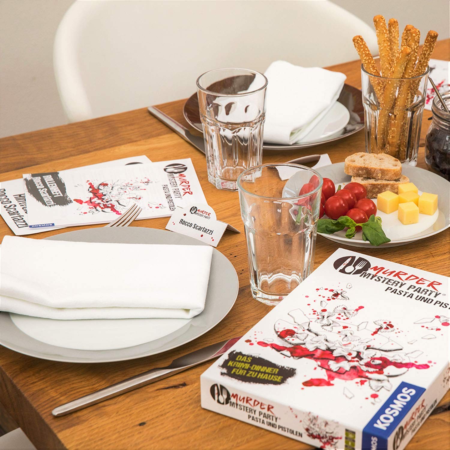 "Murder Mystery Party - Pasta & Pistolen" Krimi-Dinner für zu Hause: Im Lokal La Speranza wurde die Leiche von Restaurantbesitzer Giuseppe (Pepi) Roni gefunden. An diesem Abend treffen sich Familie und Freunde, um dem armen Pepi bei gutem italienischen Essen i...